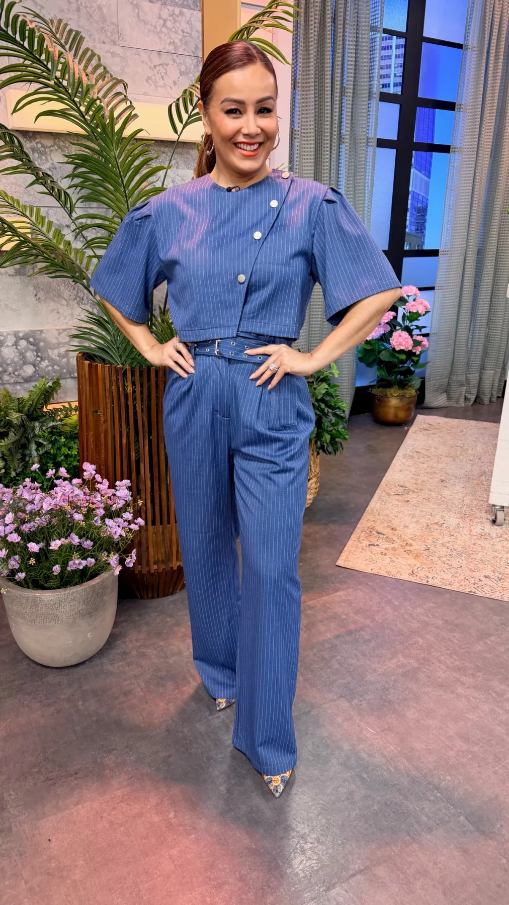 New preppy style Ghospell pinstripe trousers topped with double belted details for edgy flair. Wide leg pants featuring a high-rise waistline, side seam pockets, pleated details at the front and loose leg fit. Pairs perfectly with basic tees, blouses and knitwear for endless chic outfit ideas!